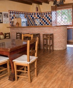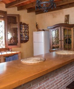 La cocina es acogedora, comunicada con la zona anterior mediante una barra con base de ladrillo y superficie de madera pulida, para proporcionar una buena visibilidad de todas las zonas comunes. En el interior y bajo sus paredes recubiertas de azulejo abrillantado en colores vivos, se reparten los electrodomésticos y el menaje, un conjunto muy completo que te ayudará a sacar tus mejores recetas.